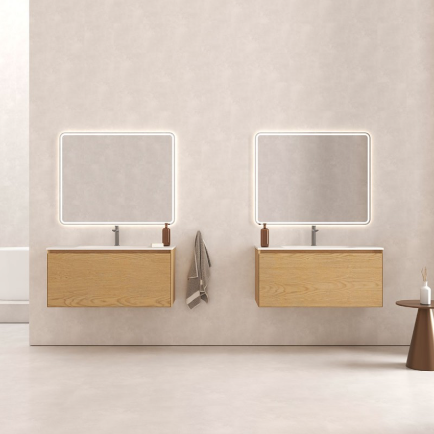 La collection Jonak s’intègre parfaitement dans des intérieurs, elle s’adapte à vos envies, deux configurations sont proposées : une version suspendue, moderne et aérienne et une version à poser, plus classique, dotée de portes et d’un tiroir coulissant intégré.